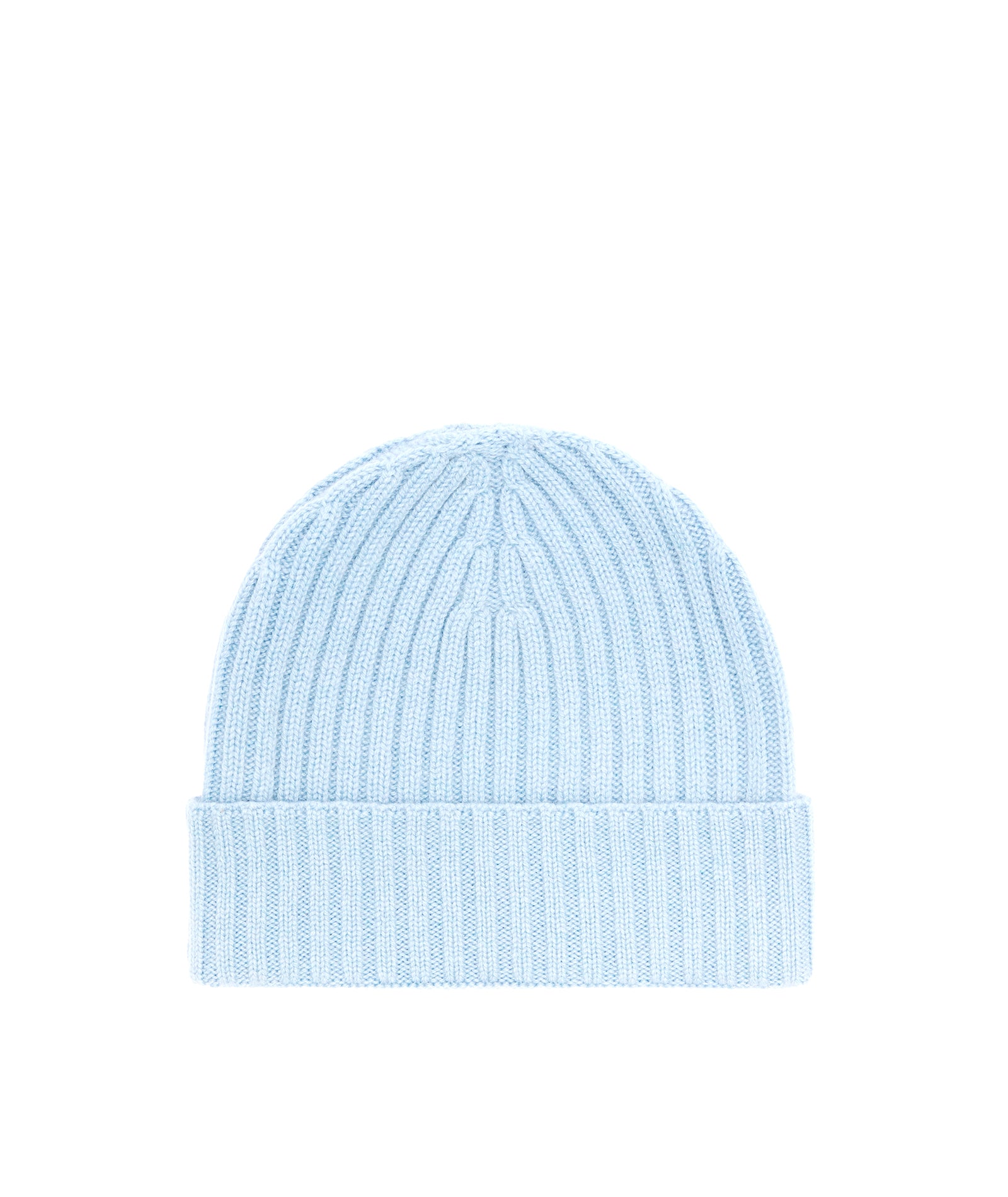 A beanie crafted in ribbed knit, light blue cashmere. A warm and soft winter accessory, which is also a perfect gift idea.