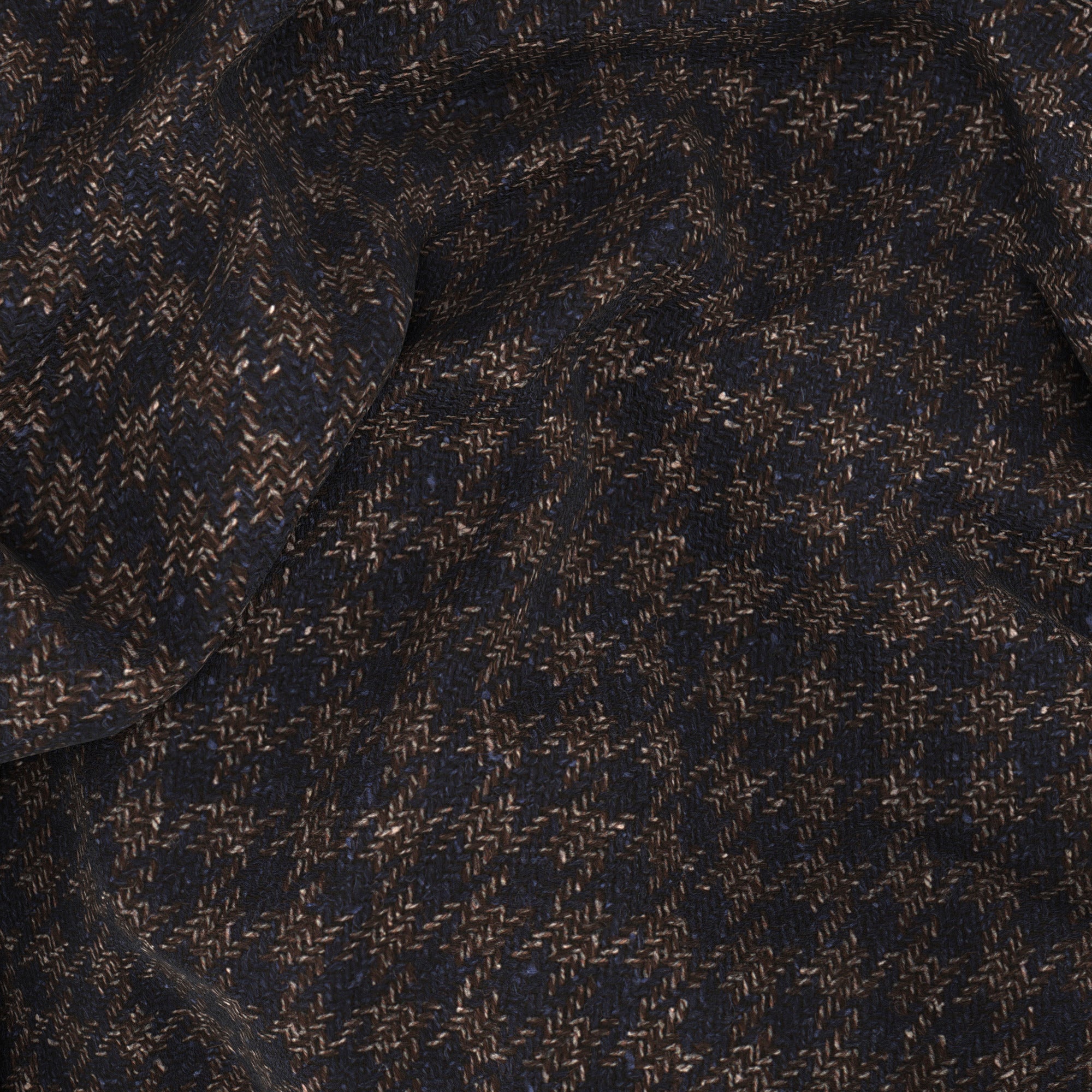 Overshirt crafted from a precious blend of wool, alpaca, and silk by the Ferla mill, an excellence of Made in Italy. The blue houndstooth pattern is brightened by brown accents, while the fabric composition combines the warmth of wool and alpaca with the softness of silk.