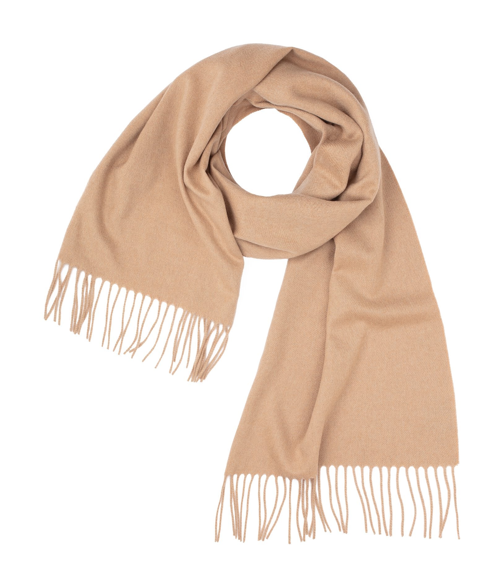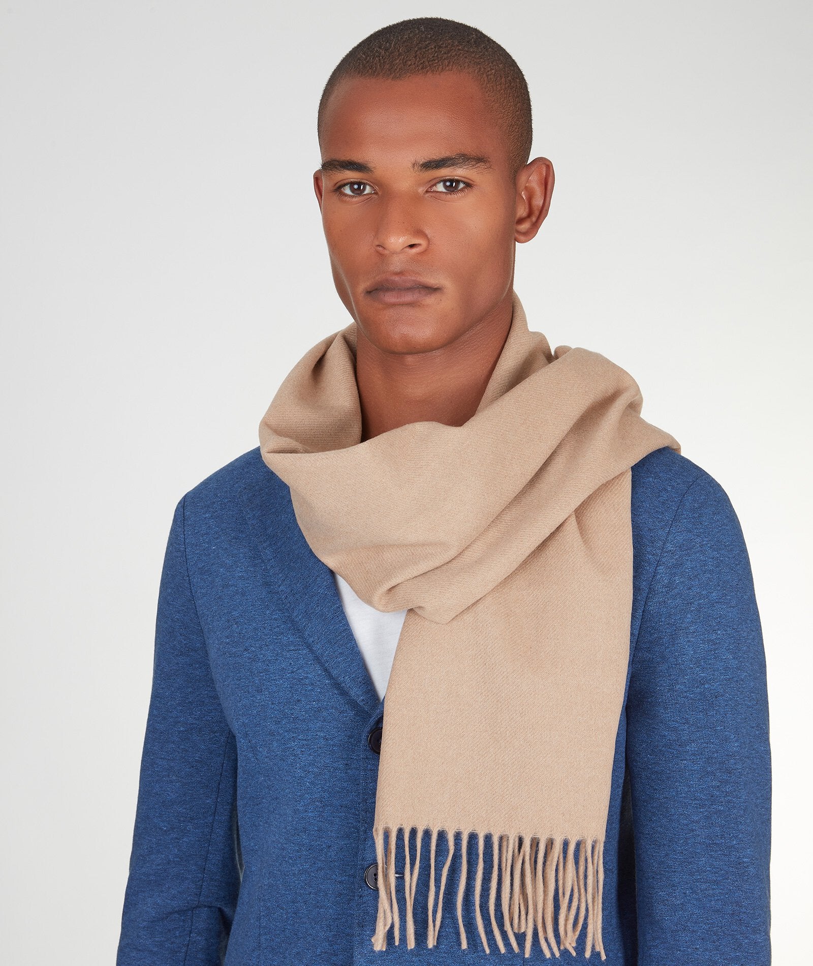 This scarf is made in Italy with a camel-colored cashmere fabric by Maalbi. In 100% Cashmere regenerated thanks to a process that allows it to recover the fibres that should be wasted, it is warm, soft and enveloping. Versatile and elegant, it is perfect to complete any winter look. Available in size 37x180cm and is characterised by the presence of thin fringes in the final part.