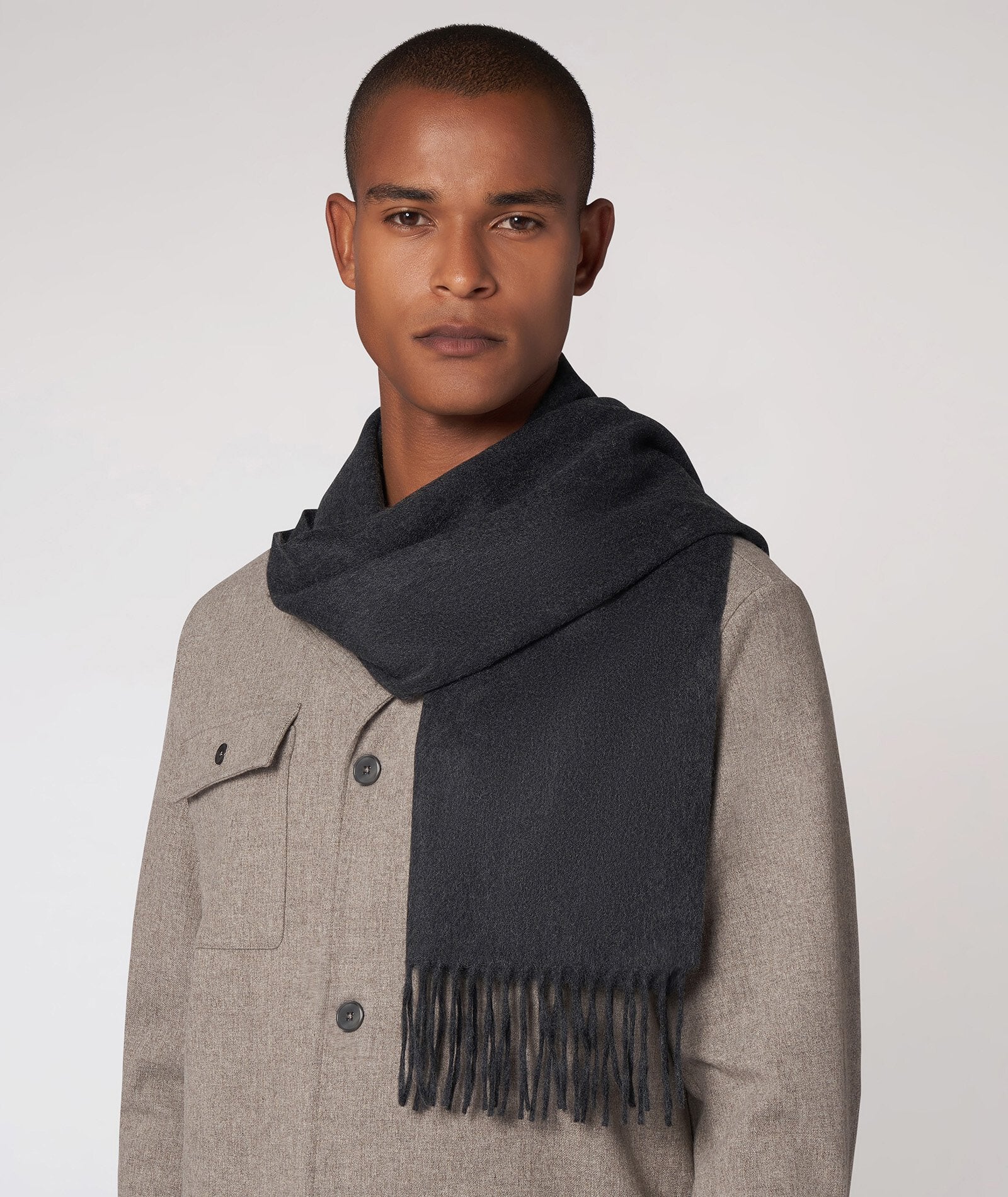 Warm and enveloping, this dark grey scarf in 100% GOTS-certified regenerated cashmere combines the demand for style with that of sustainability and care for the environment. The ideal accessory to top off your winter look in the name of style and elegance. The scarf measures 37cm x 180cm.