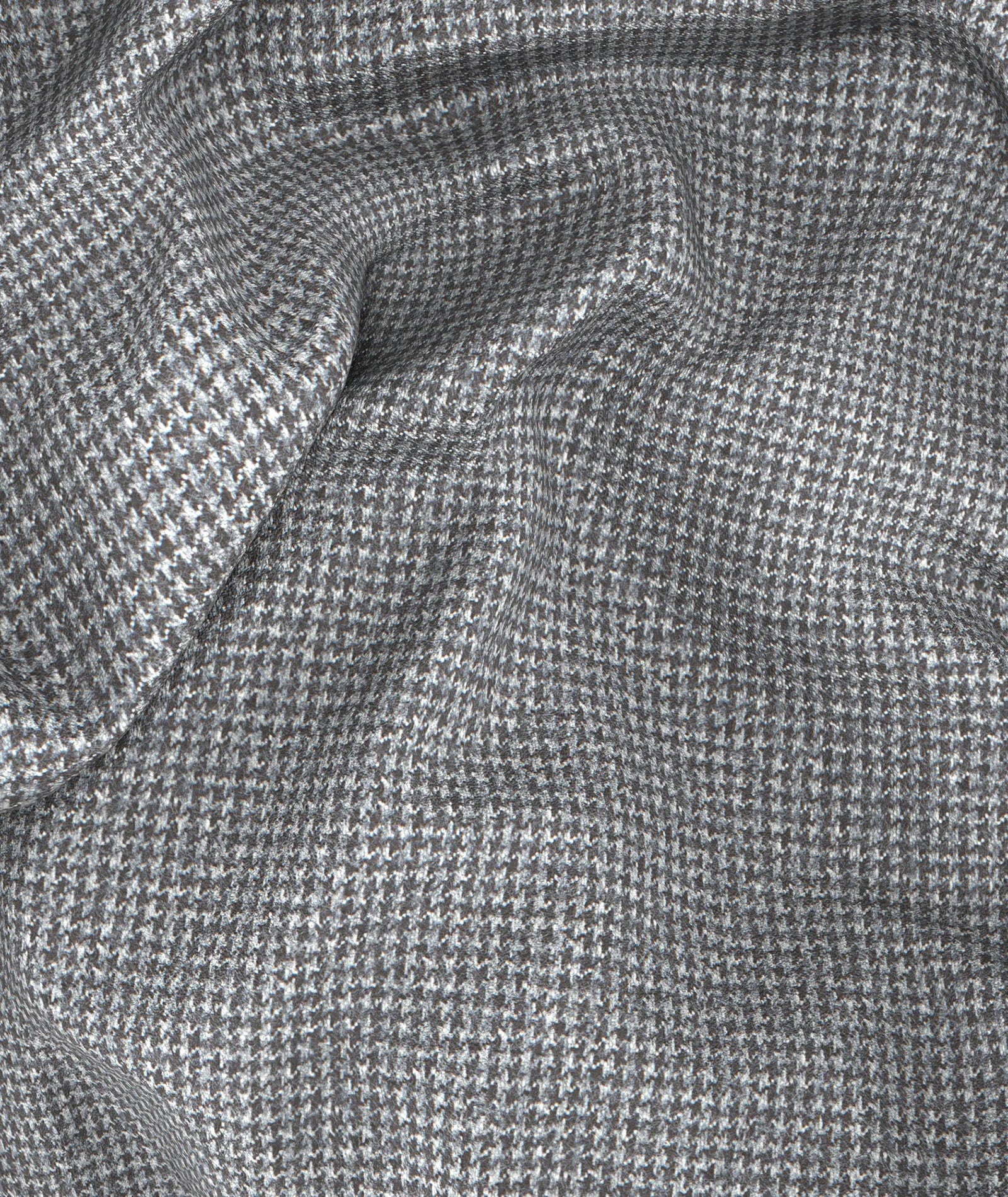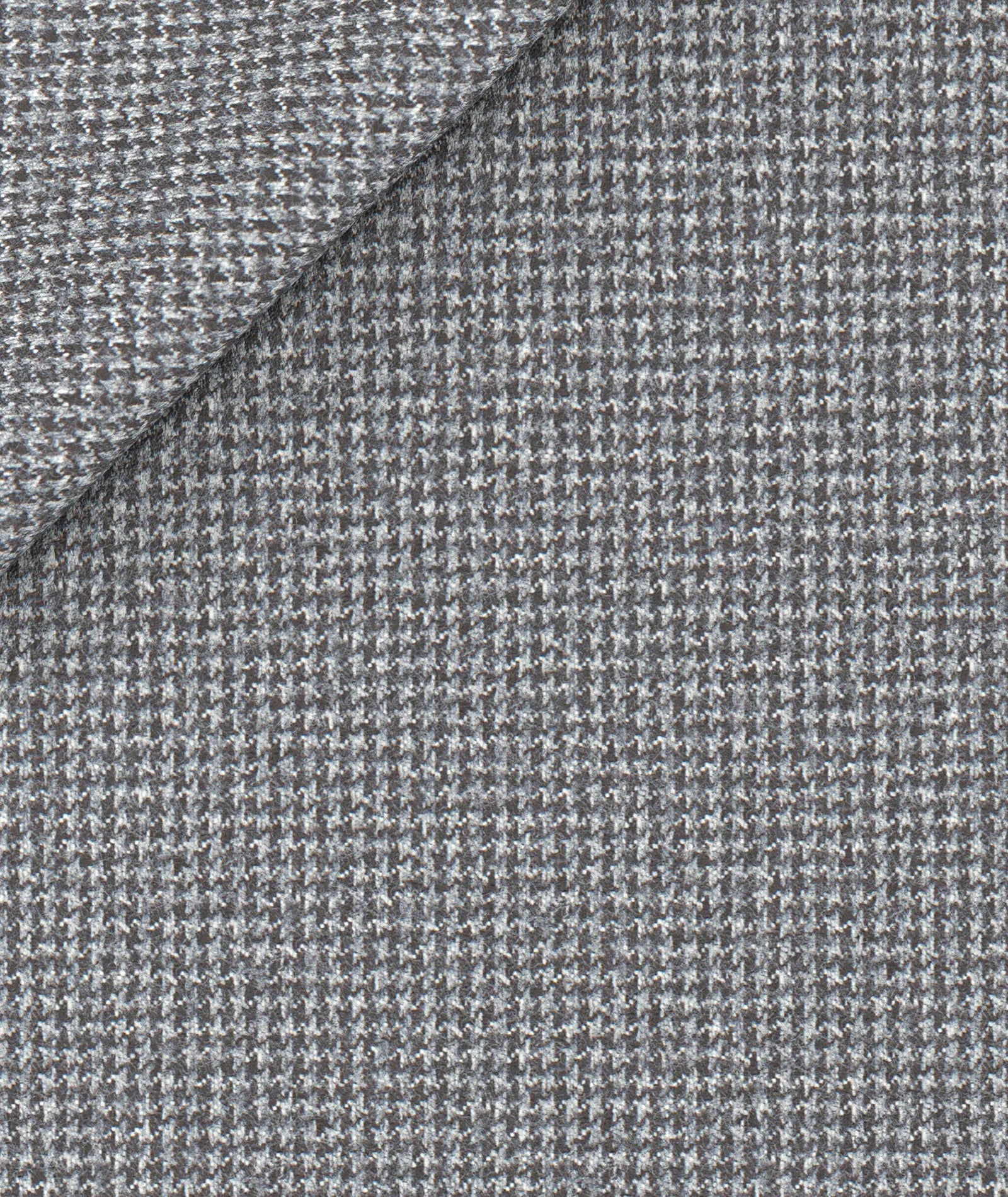 Made-to-Measure suit made in Italy using a wool fabric from the Vitale Barberis Canonico wool mill, characterised by a grey houndstooth pattern. The perfect garment for the winter months, worn with a turtleneck for the coldest days.