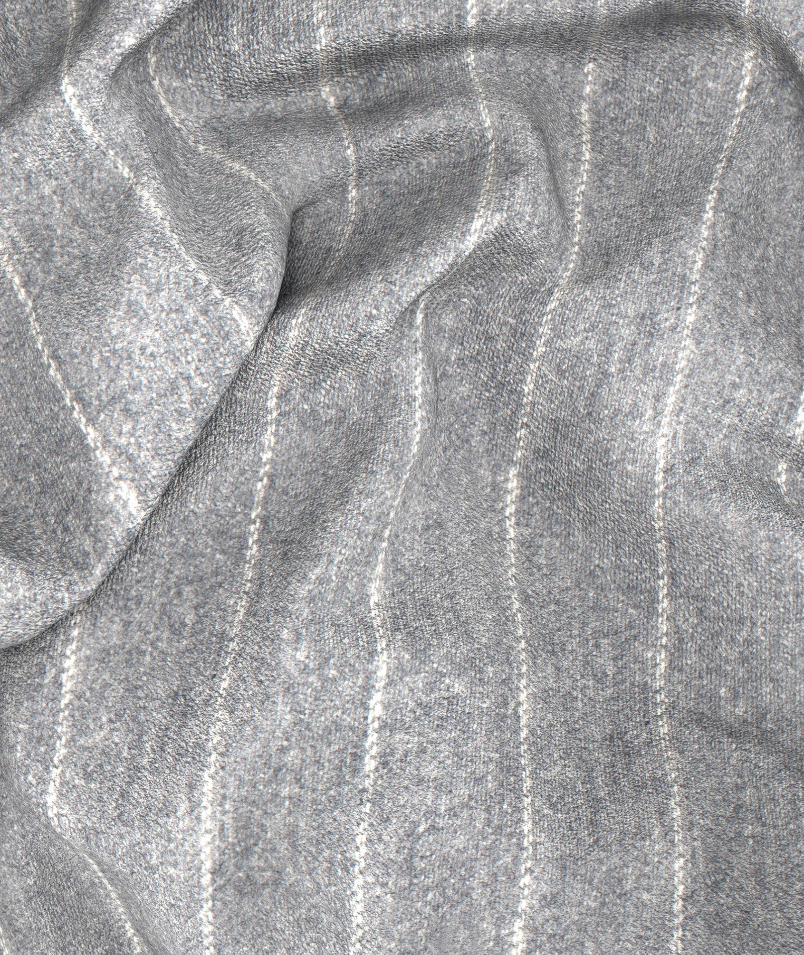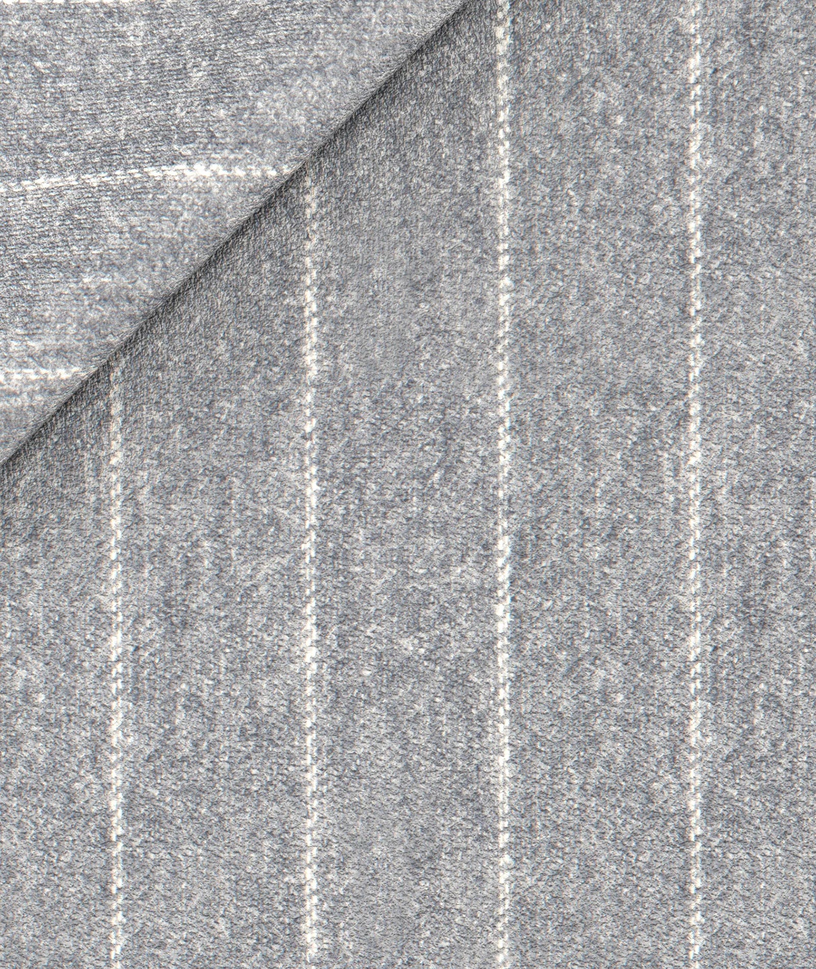Made-to-Measure suit made in Italy using soft pinstripe wool flannel from the Vitale Barberis Canonico wool mill. Cosy, warm and comfortable, here in light shades of grey, flannel is the perfect blend of formality and functionality. Team it with a turtleneck in the coldest months.