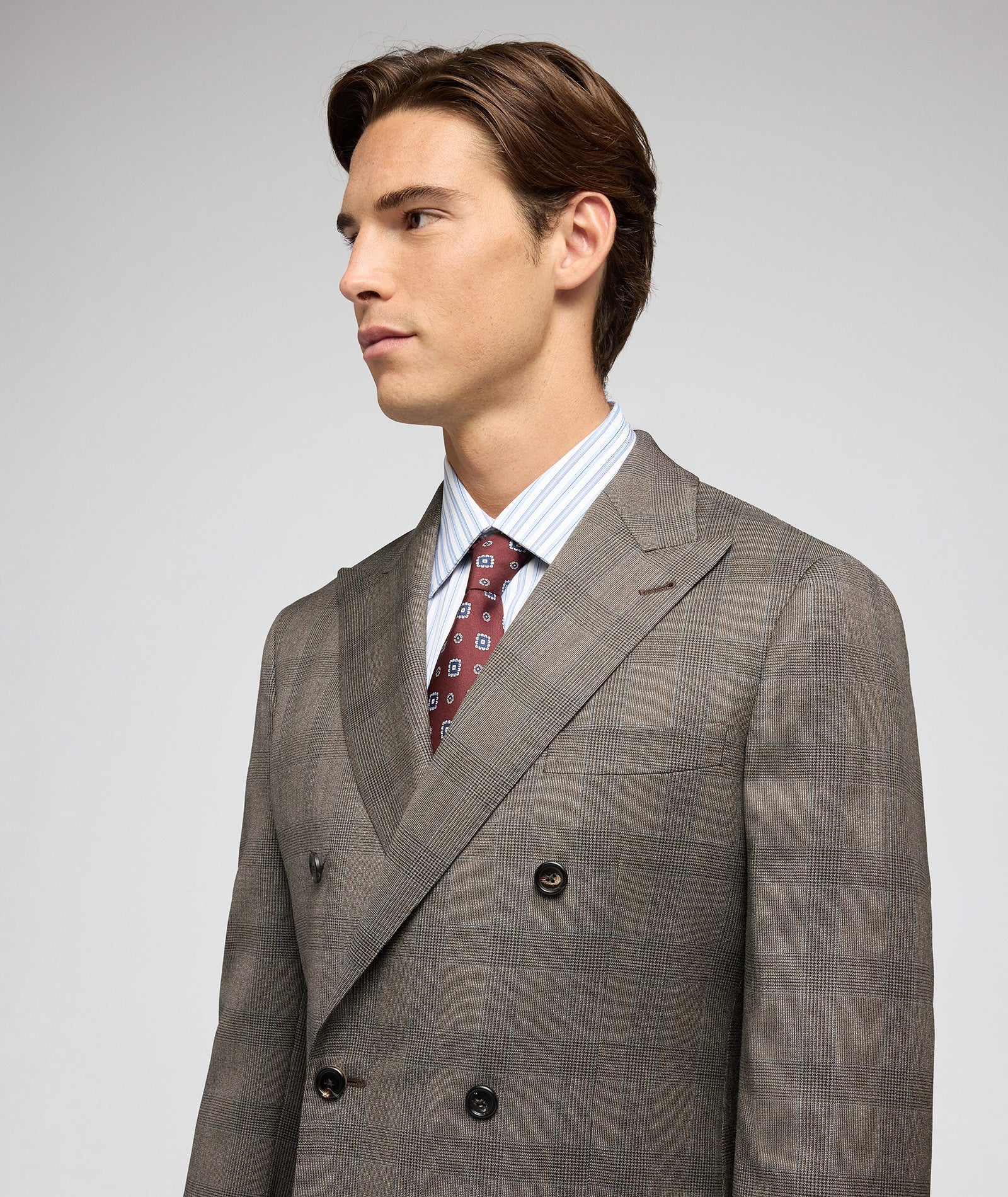 Made-to-Measure suit crafted from a wool fabric by the Vitale Barberis Canonico mill. This fabric is characterised by a Prince of Wales check on a pronounced-twill ground, which blends gunmetal grey nuances with a light blue overcheck. A refined yet comfortable garment, perfect for everyday wear at the office.