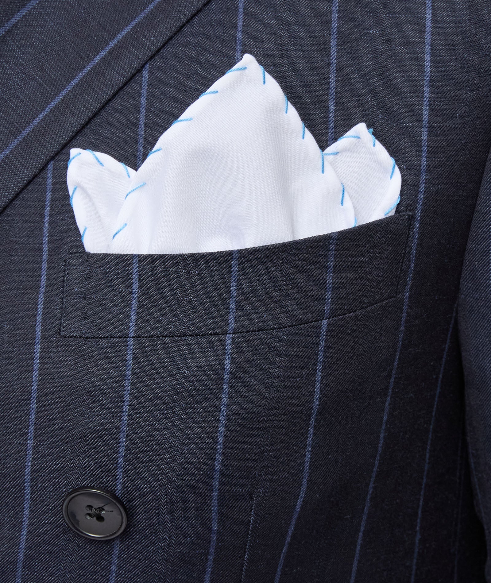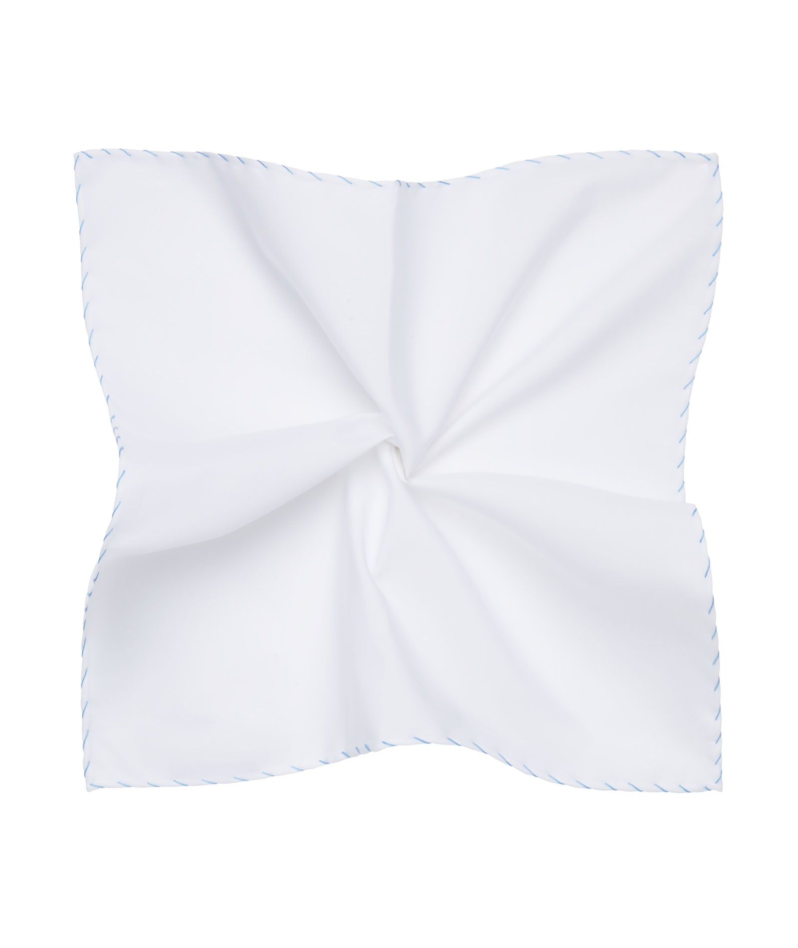 Pocket square in cotton made in Italy. Square-shaped, enhanced by a light blue hem detail. Perfect for wearing in the pocket of a jacket or blazer for an extra touch of style.