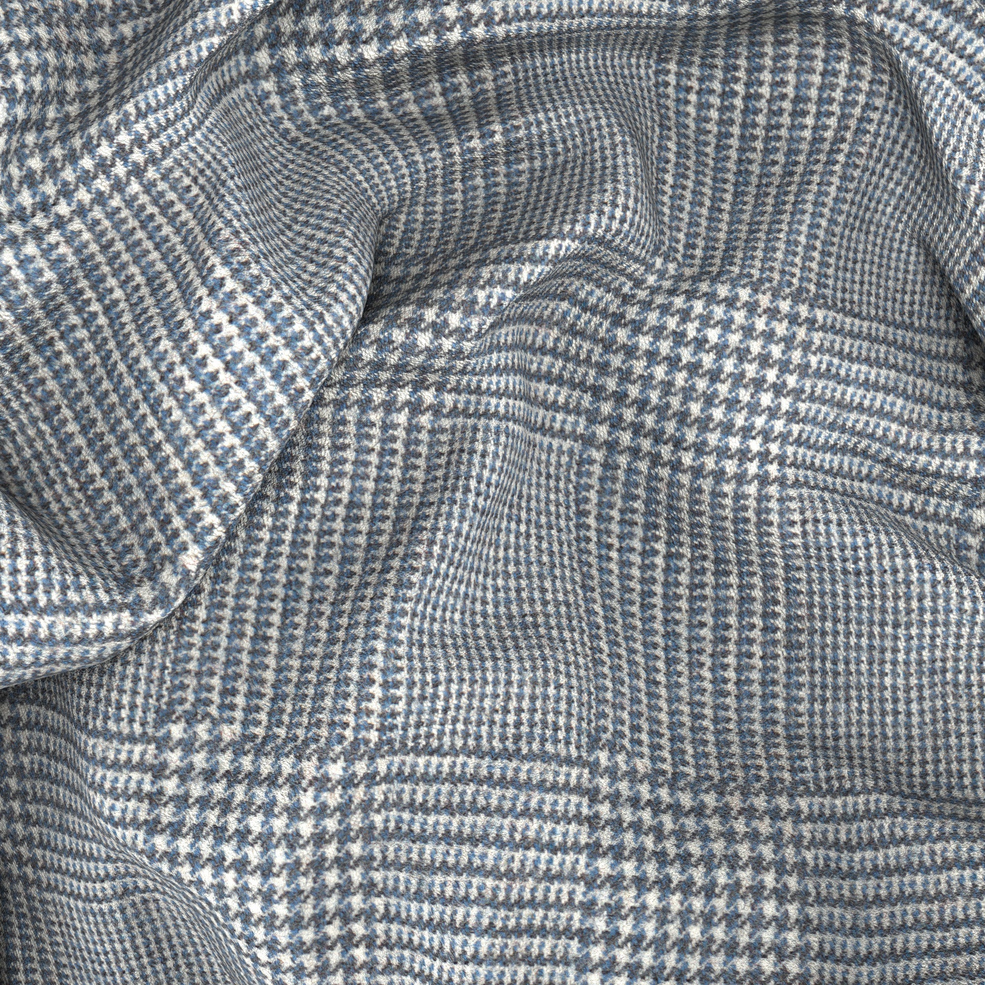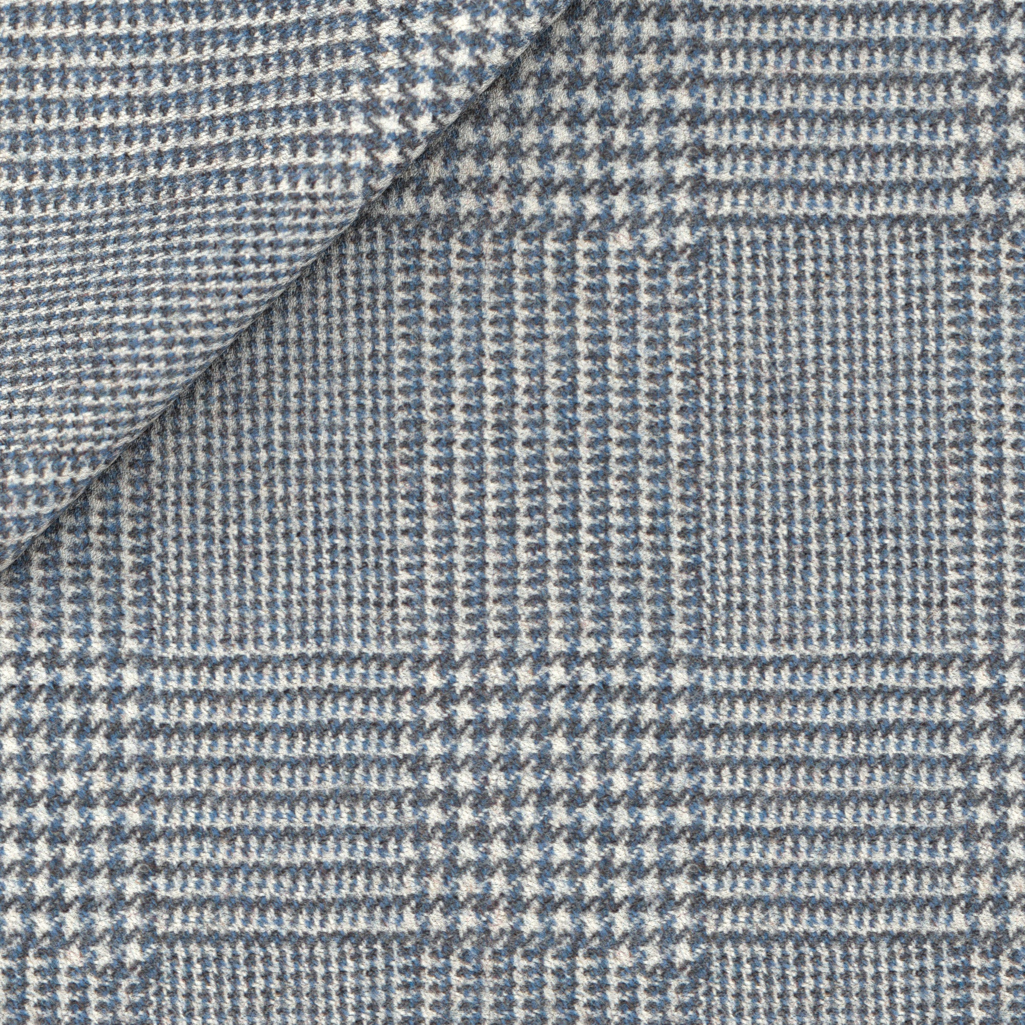 Made-to-Measure waistcoat in wool from the Ermenegildo Zegna wool mill, featuring a Prince of Wales pattern in sophisticated light blue tones. A touch of brightness for a winter garment to wear at the office, together with the suit in the same fabric, and on formal occasions.