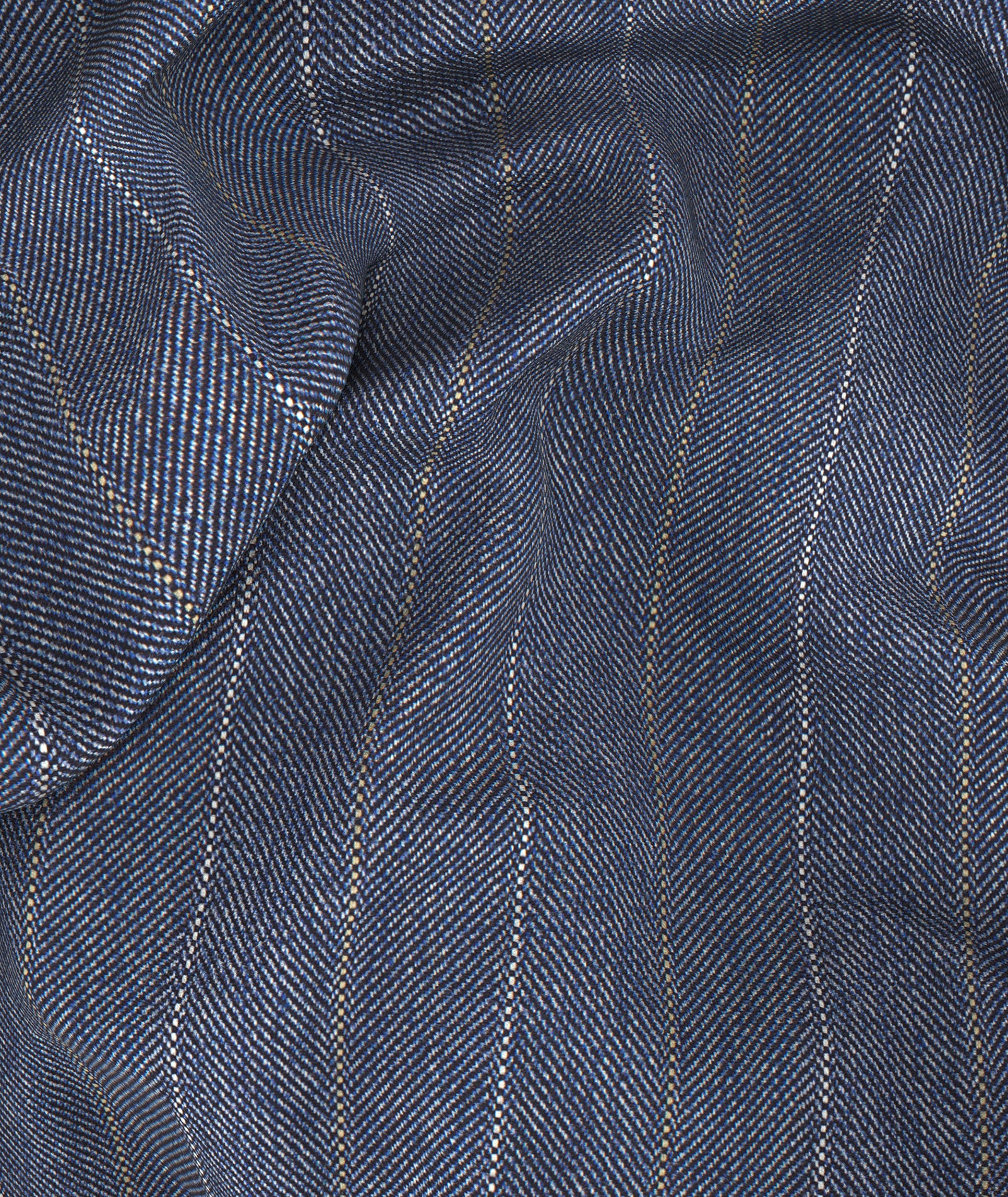 Blazer a medida para hombre en twill de lana y Tencel a rayas azul mélange