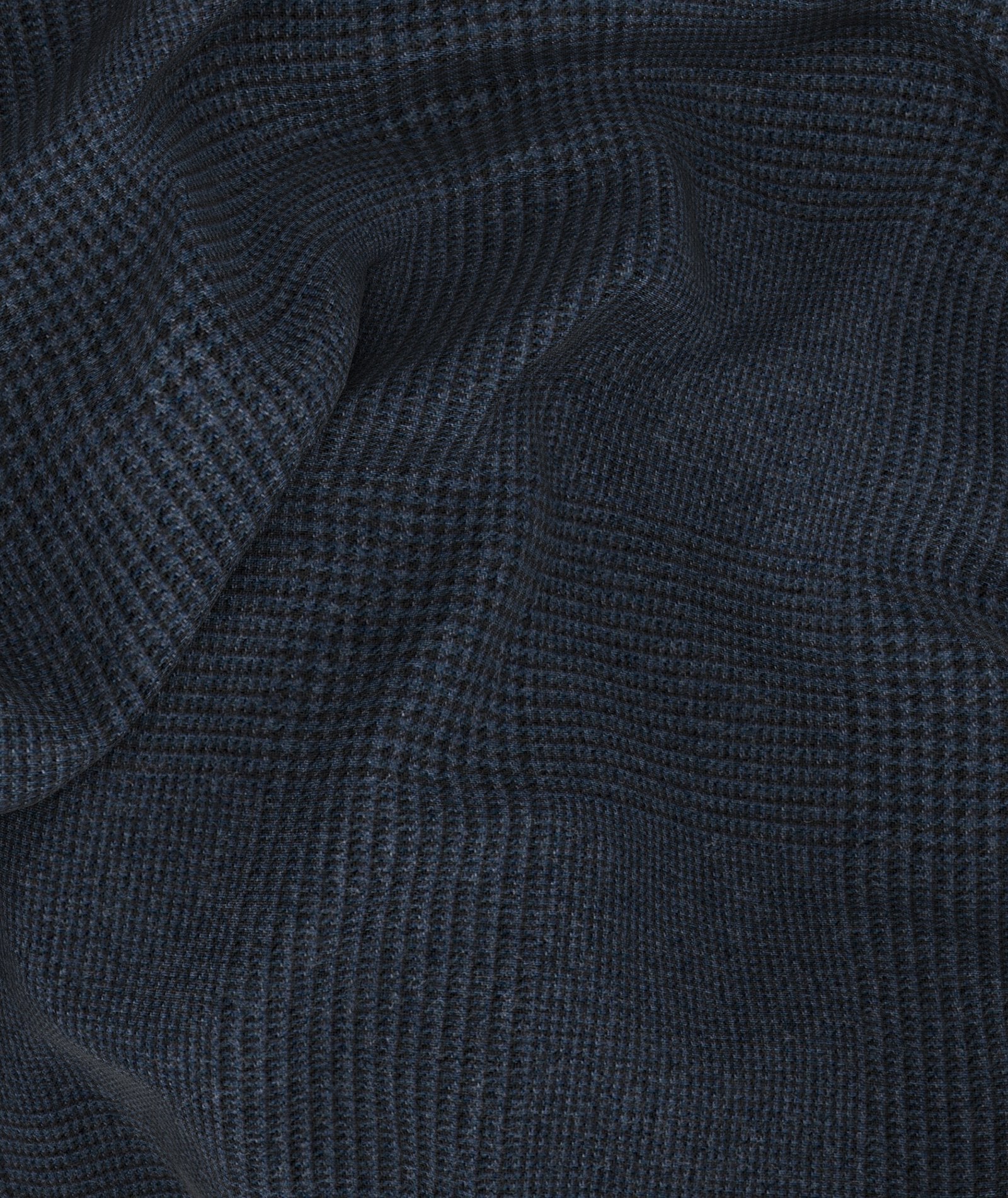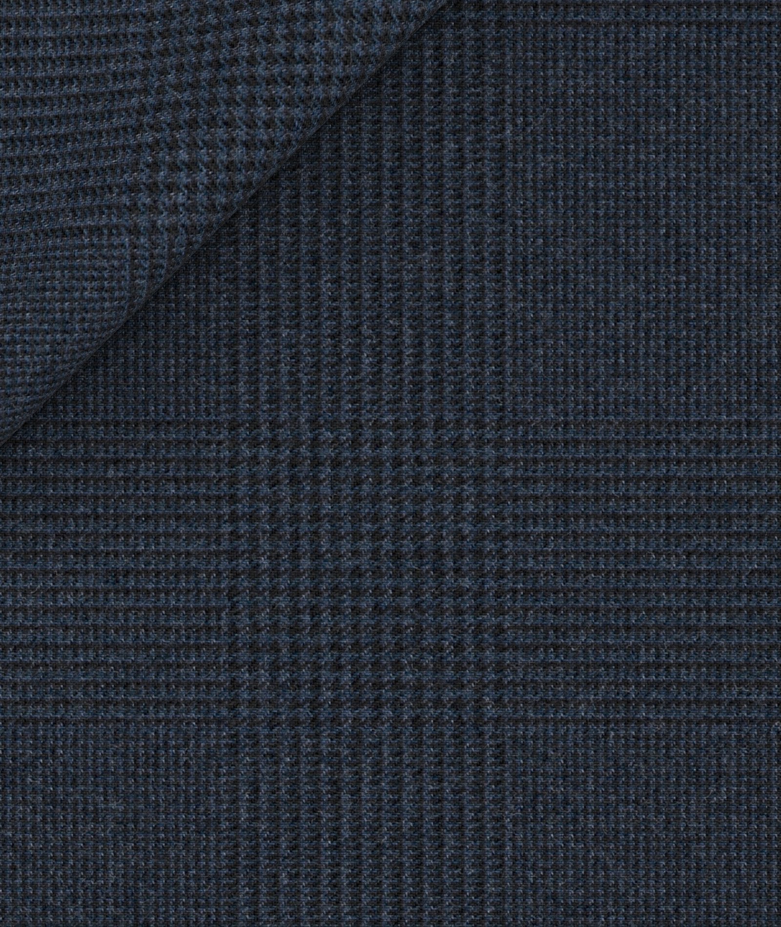 Este blazer a medida está hecho en Italia con un tejido de lana de la tejeduría Reda. Está fabricado al 100% en franela de lana Super 130's, que es cálida y envolvente. Presenta un refinado patrón de Príncipe de Gales en tonos azules. Es una reinterpretación contemporánea de uno de los clásicos motivos de elegancia masculina, ideal para ser usado como una prenda versátil en invierno en ocasiones formales.