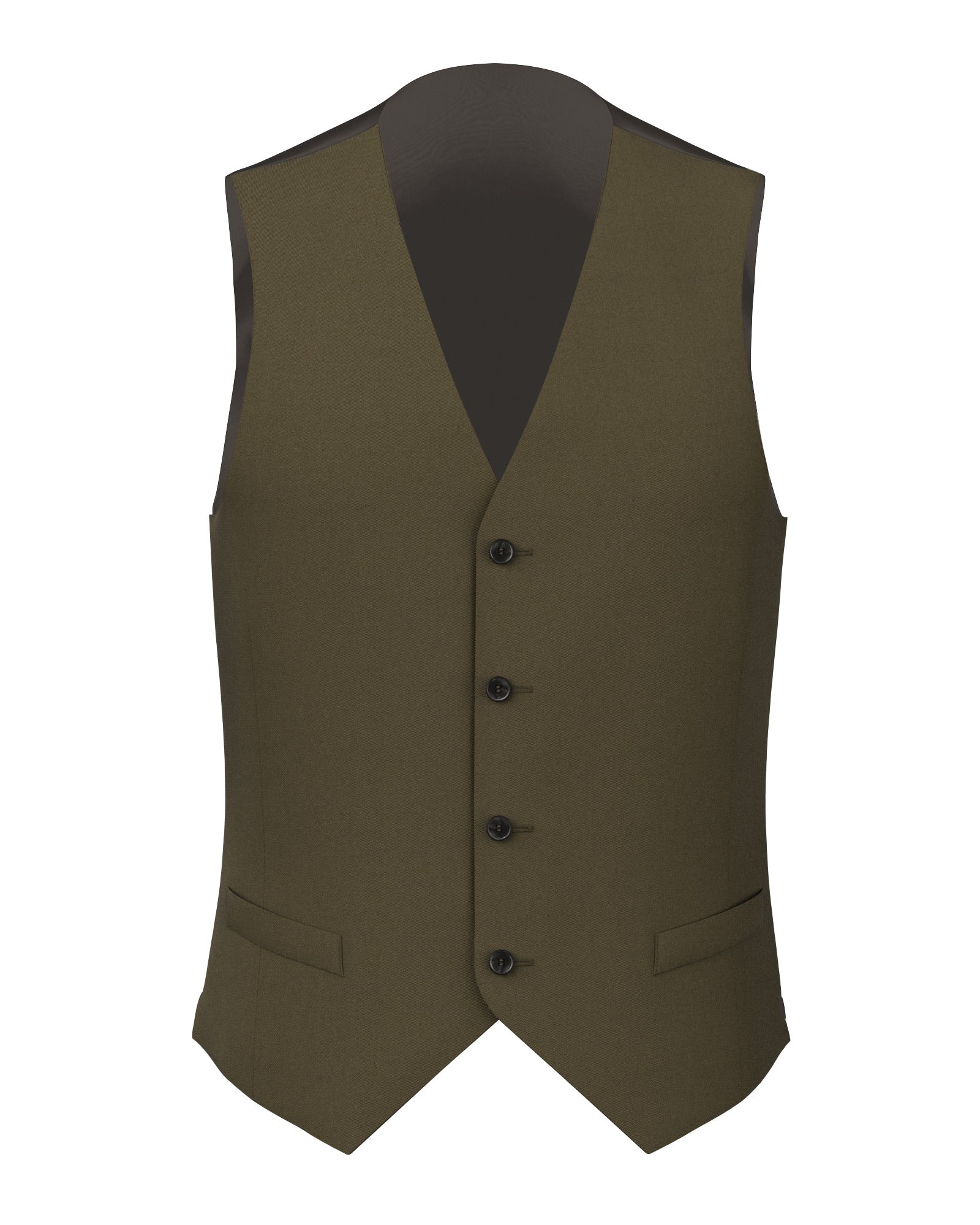Este chaleco A Medida está confeccionado con un tejido verde en twill de algodón elástico de la fábrica de algodón «Tessuti» de Sondrio. En algodón elástico, resulta estructurado y resistente además de ser suave al tacto y cómodo en los movimientos. Ideal para llevar en otoño-invierno, es una opción versátil y fácil de combinar con el traje del mismo tejido para crear el look de tres piezas.