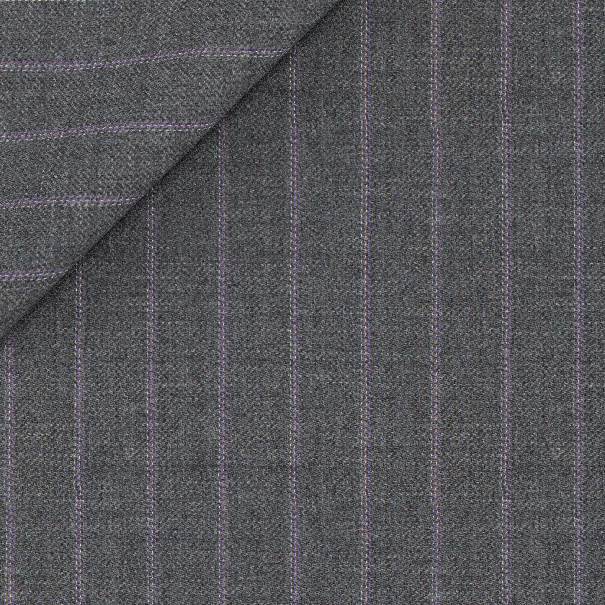 Chaqueta A Medida realizada con un tejido de lana de la fábrica de lana Vitale Barberis Canonico. En los tonos del gris medio, presenta una raya diplomática lila que aporta un toque contemporáneo y luminoso a la prenda. La combinación perfecta entre estilo clásico y contemporáneo, ideal para llevar en ocasiones de trabajo y, gracias al peso medio del tejido, durante todo el año.