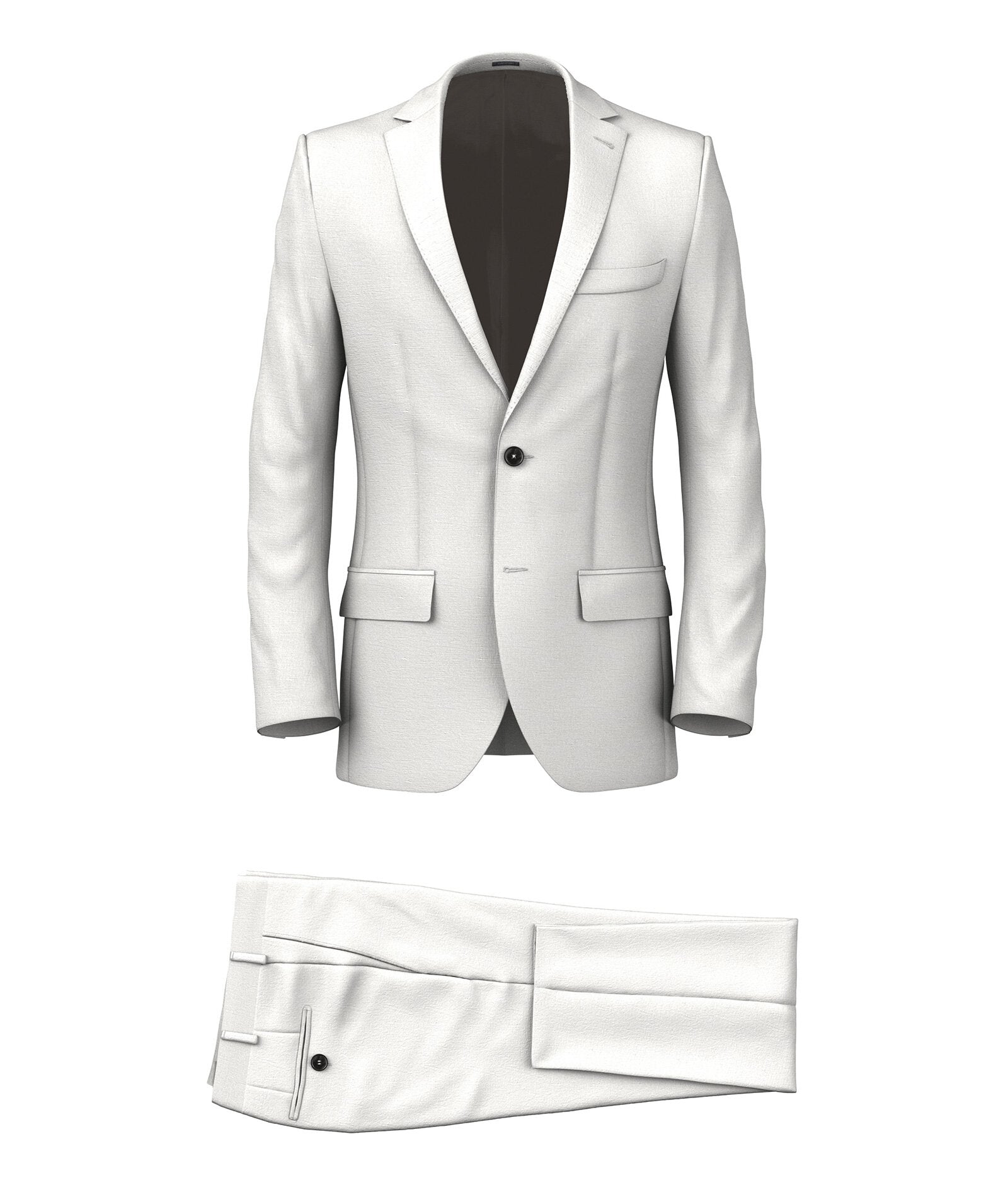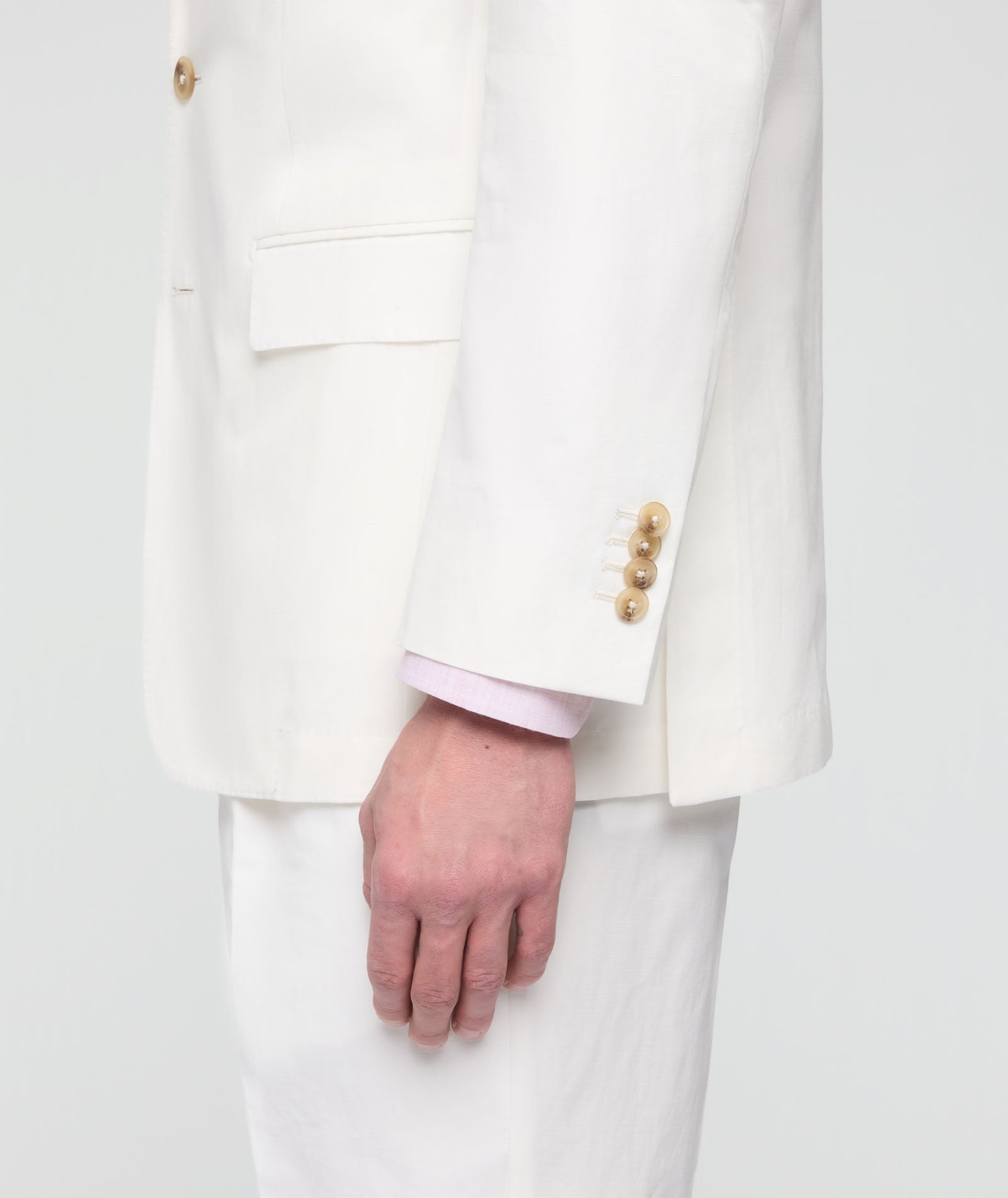 Este traje a medida está confeccionado en Italia con un tejido blanco de lino-algodón de la fábrica de lino Zignone. El lino de algodón es fresco y ligero. Perfecto para el tiempo libre y para un look veraniego sofisticado también adecuado para ceremonias junto al mar.