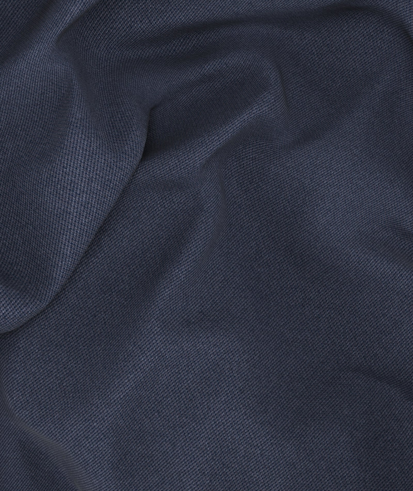 Este traje a medida está hecho en Italia con un tejido de lana Super 110's y lyocell de la tejeduría Reda. El lyocell es una fibra artificial y sostenible de origen natural, ya que se extrae de la celulosa de la planta de eucalipto. Esta fibra, además de tener un bajo impacto ambiental, proporciona suavidad y transpirabilidad al traje, haciéndolo especialmente cómodo y versátil. Con un tejido de twill teñido de hilos, presenta el característico efecto mélange en tono azul denim.