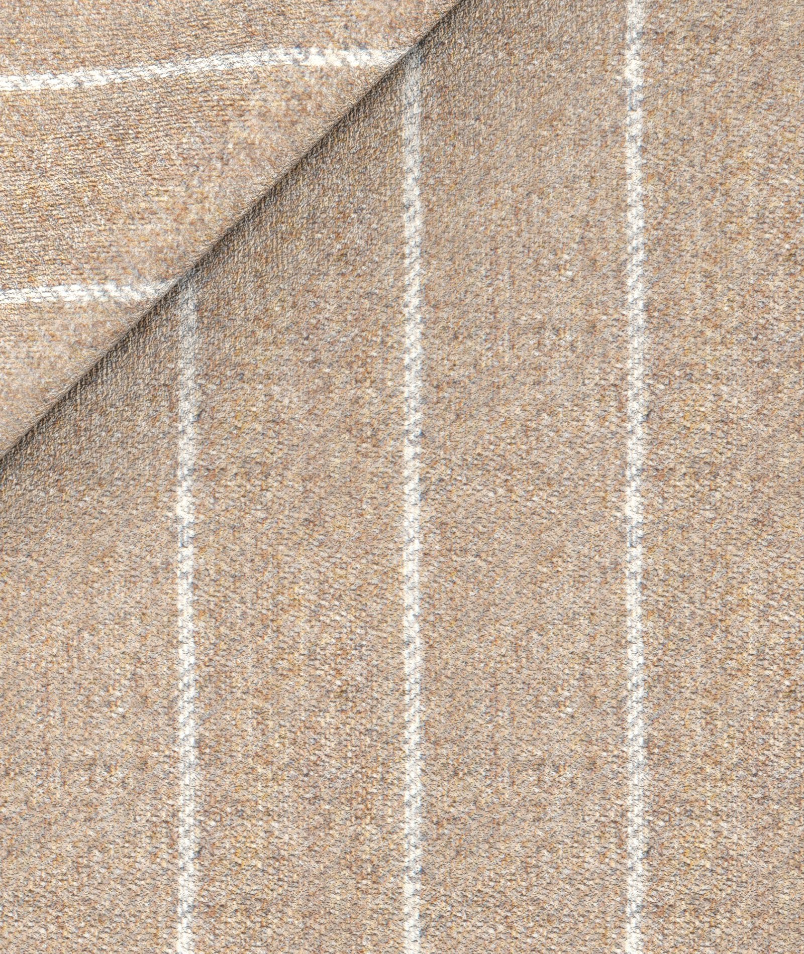 Traje hecho a medida para hombre de raya diplomática en franela de lana beige
