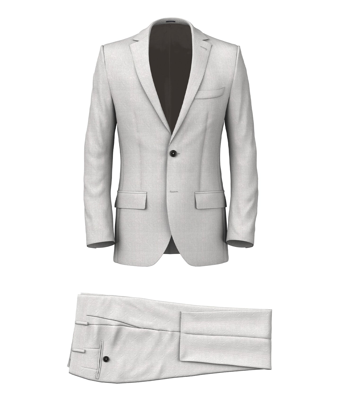 Abito Su Misura realizzato con un tessuto in lino bianco del produttore Tessuti di Sondrio. Quintessenza del look casual-chic per l'estate, questo capo combina la traspirabilità e la freschezza del lino con l'eleganza dell'abito. Un look adatto anche alle cerimonie estive più informali.