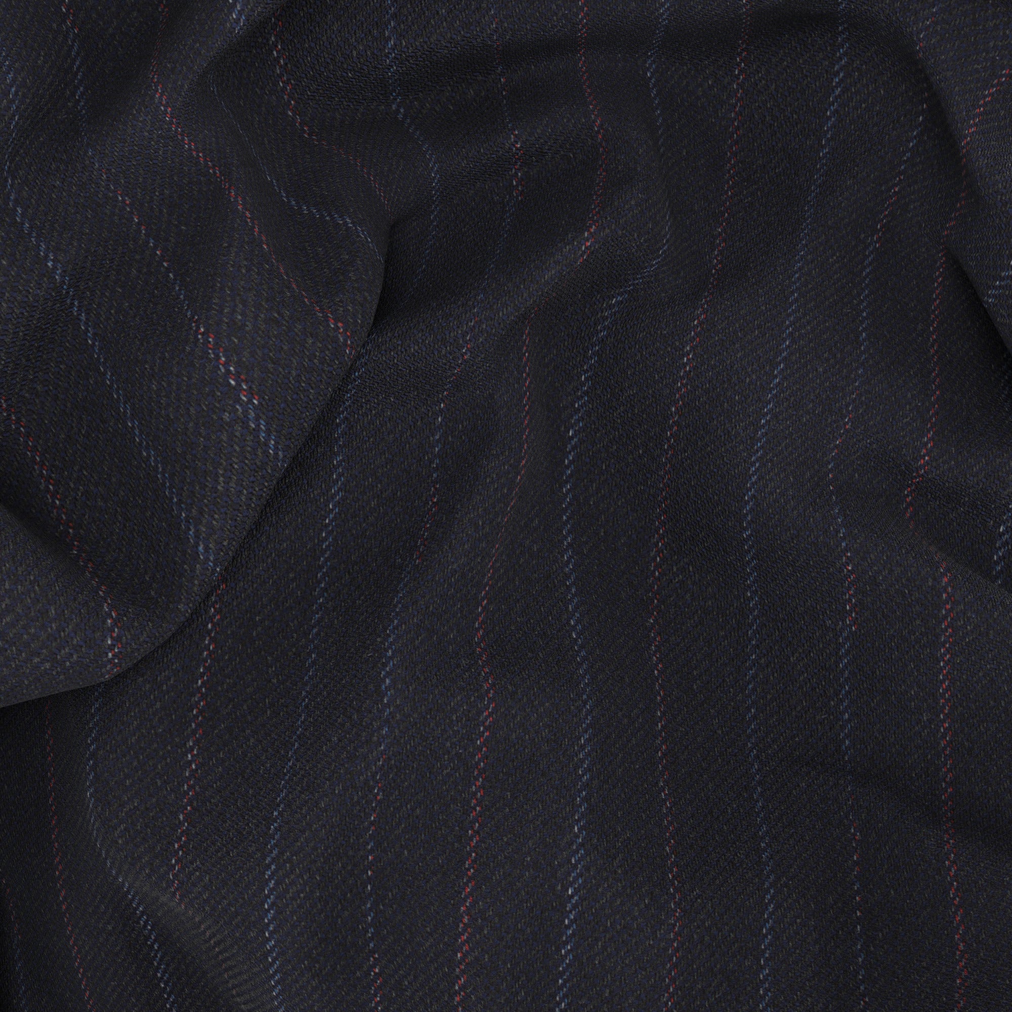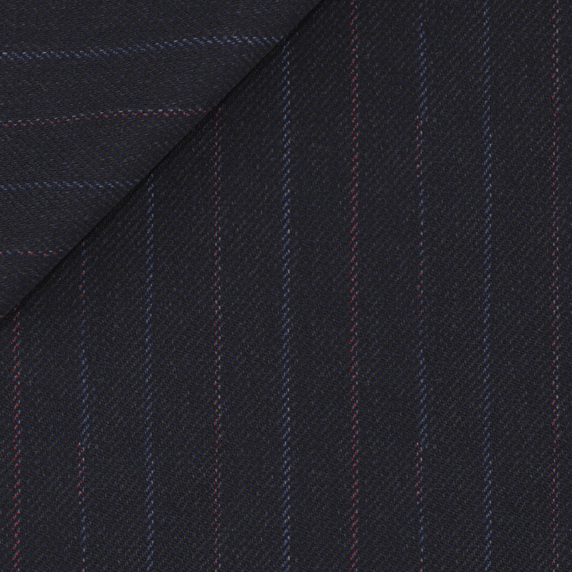 Abito Su Misura realizzato in lana con un tessuto del lanificio italiano Carlo Barbera. La classica fantasia gessata si arricchisce di una riga color azzurro e una riga color mattone, che dona un tocco luminoso al capo. Un classico del guardaroba maschili rivisitato in chiave moderna, perfetto per le occasioni di lavoro e con un peso medio, ideale da indossare tutto l'anno.