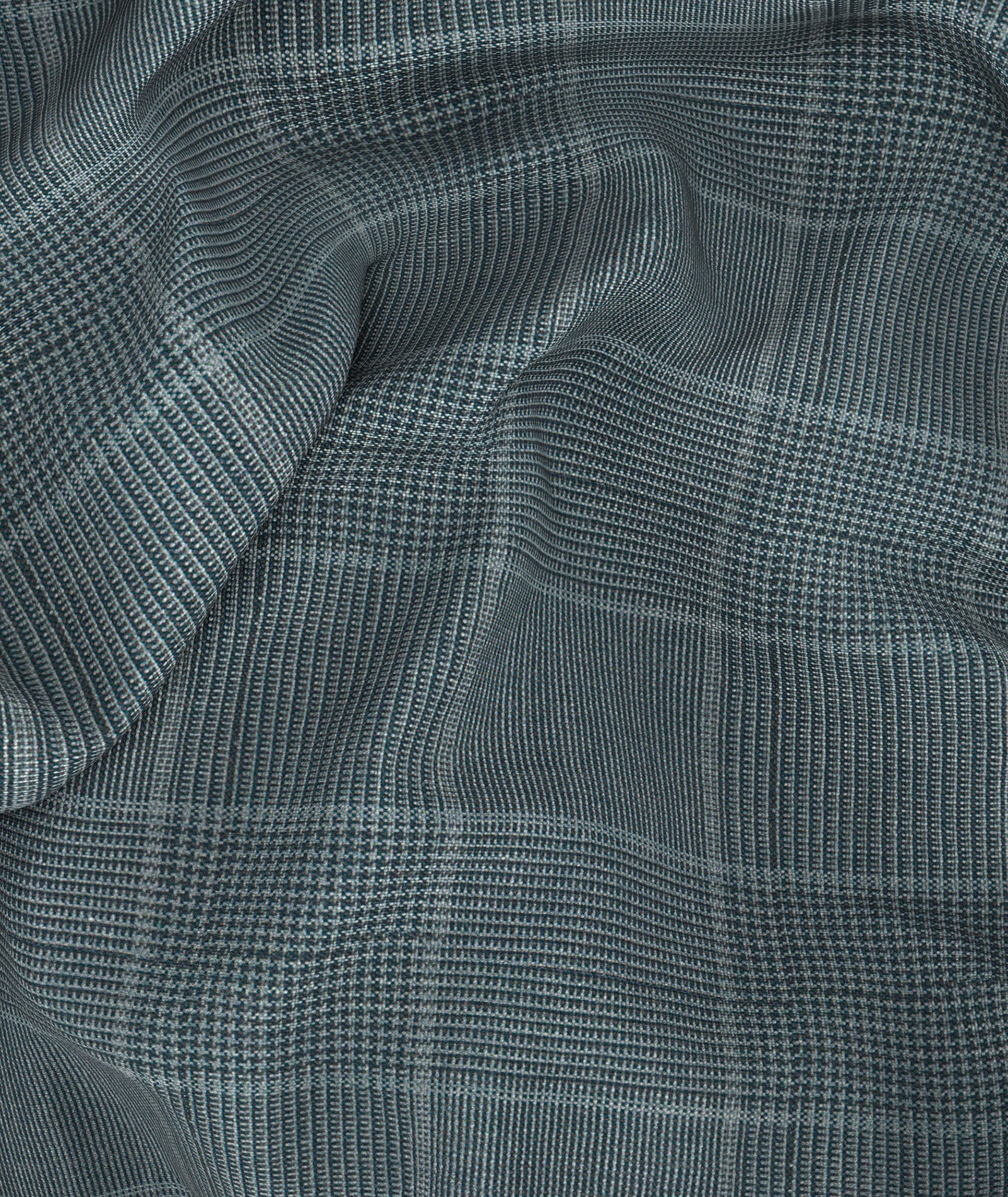 Blazer Sur Mesure confectionné en Italie dans un tissu prince de galles dans les tons gris. Confectionné dans un tissu végan de laine et de soie provenant de la filature Drago, ce vêtement d'une élégance classique s'inscrit dans une démarche de développement durable.
