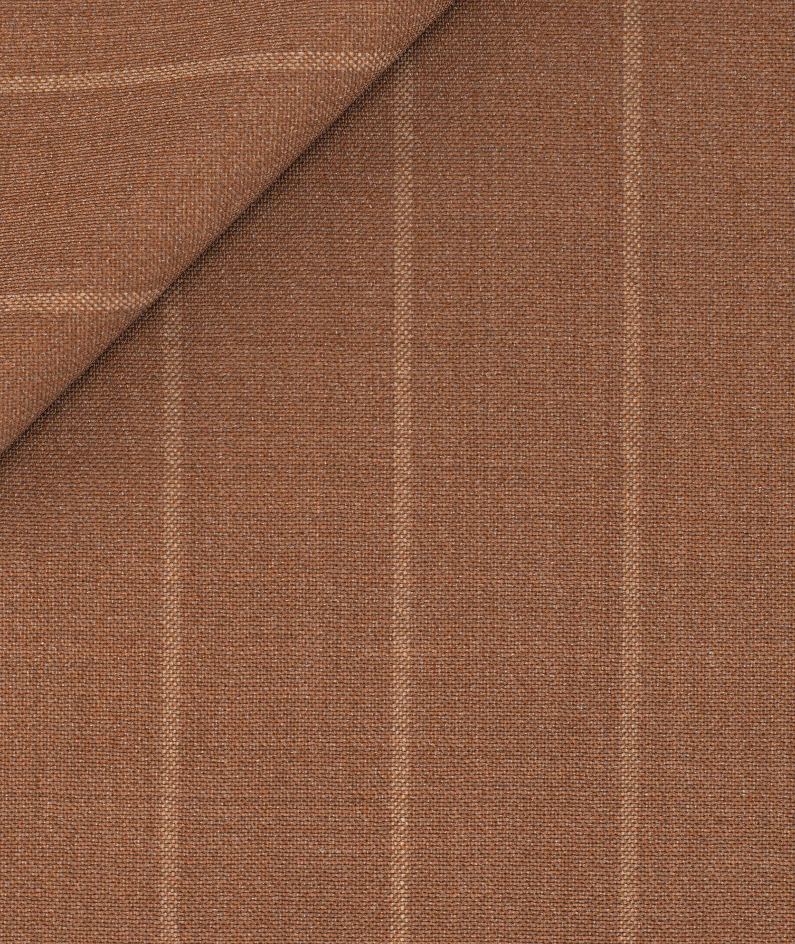 Blazer Sur Mesure confectionné en Italie dans un tissu en laine et soie provenant de la filature Drago. D'une teinte brique, agrémentée d'un motif classique à rayures sublimé par la présence de la soie qui apporte une douceur inégalée et une subtile brillance. Parfait pour la saison estivale, c'est un vêtement raffiné et polyvalent.