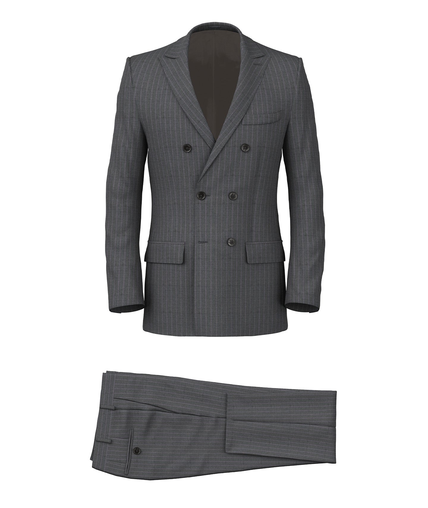 Costume réalisé Sur Mesure avec un tissu en laine de la manufacture de laine Vitale Barberis Canonico. Dans des tons gris moyen, il a de fines rayures lilas qui donnent une touche contemporaine et lumineuse au vêtement. Le bon mélange de style classique et contemporain, idéal pour les occasions professionnelles et - grâce au grammage moyen du tissu - toute l’année.