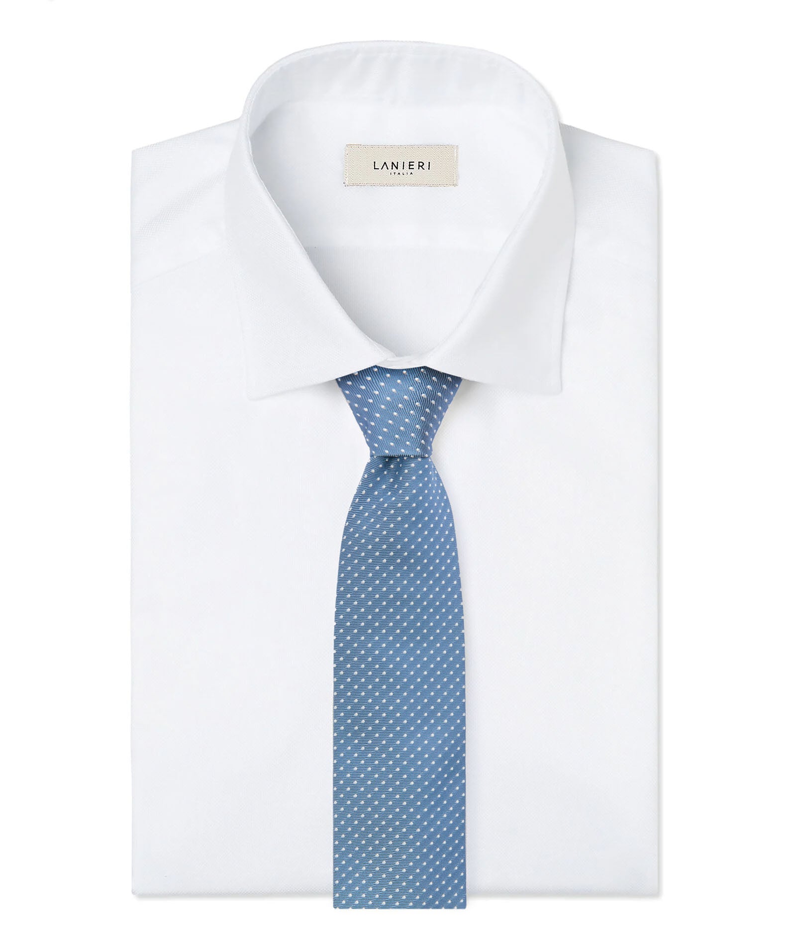 Cette cravate est réalisée en 100% jacquard de soie, en Italie. Élégante, formelle et raffinée, elle présente un motif à pois bleu ciel qui en fait un accessoire de style indispensable pour les occasions les plus formelles ou pour le bureau. Les cravates Lanieri peuvent être personnalisées pour créer un style unique et personnel.