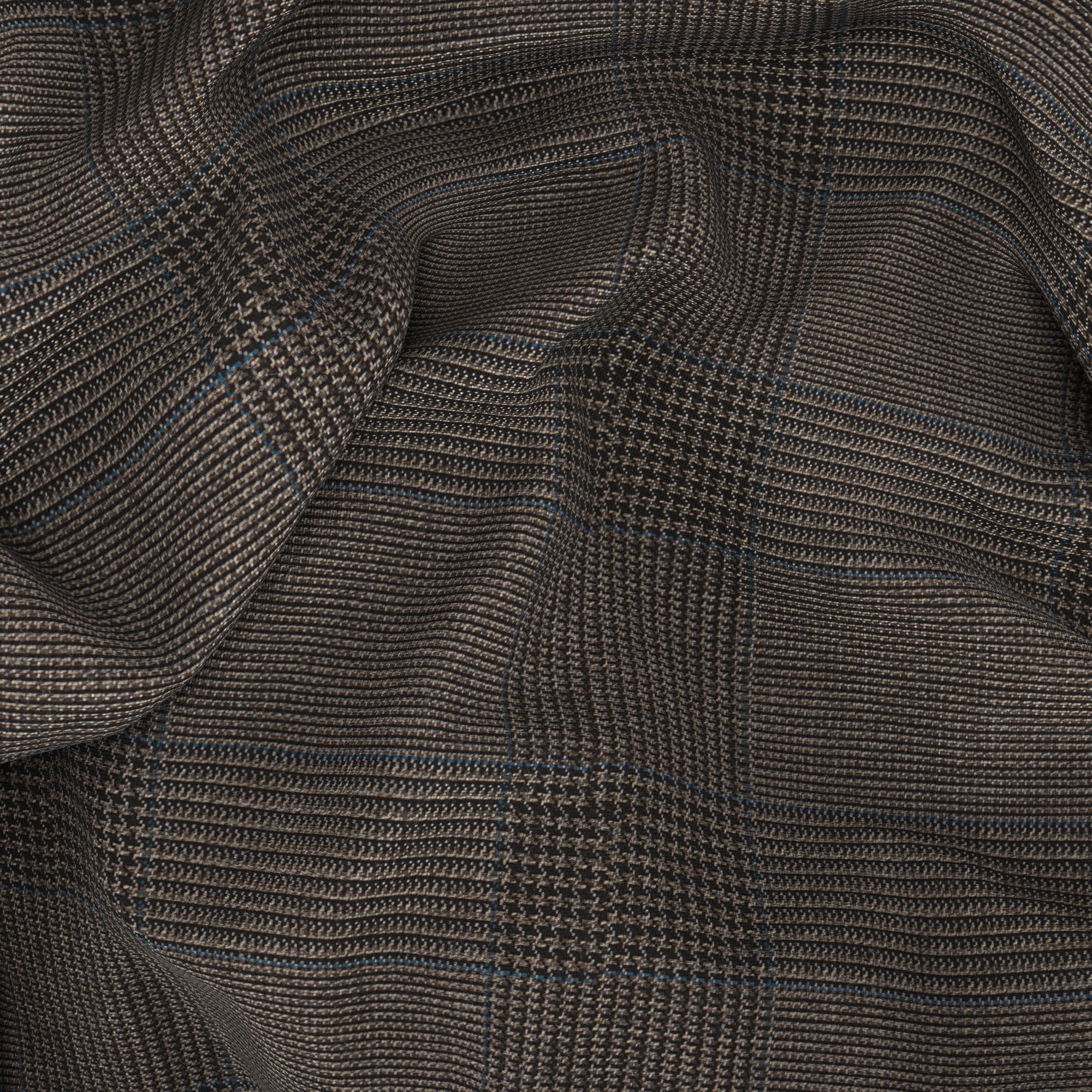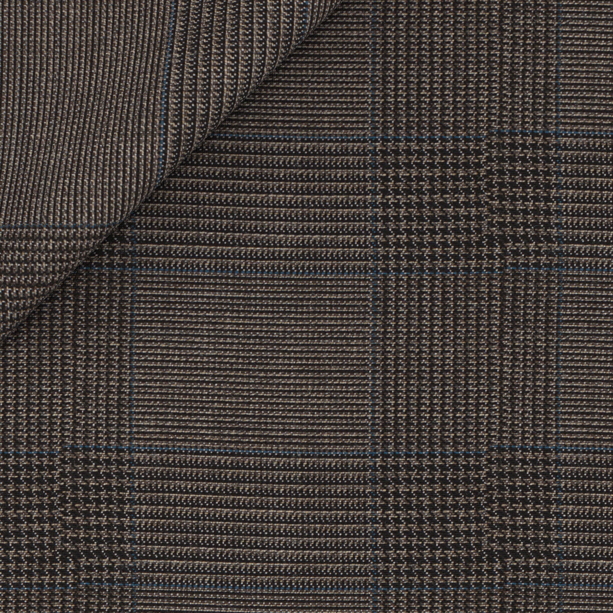 Gilet réalisé Sur Mesure avec un tissu en laine de la manufacture de laine Vitale Barberis Canonico. Ce tissu est caractérisé par un motif Prince de Galles sur fond à chevrons, qui mélange les tons canon de fusil avec un overcheck bleu clair. Un vêtement raffiné et confortable, à porter tous les jours au bureau.
