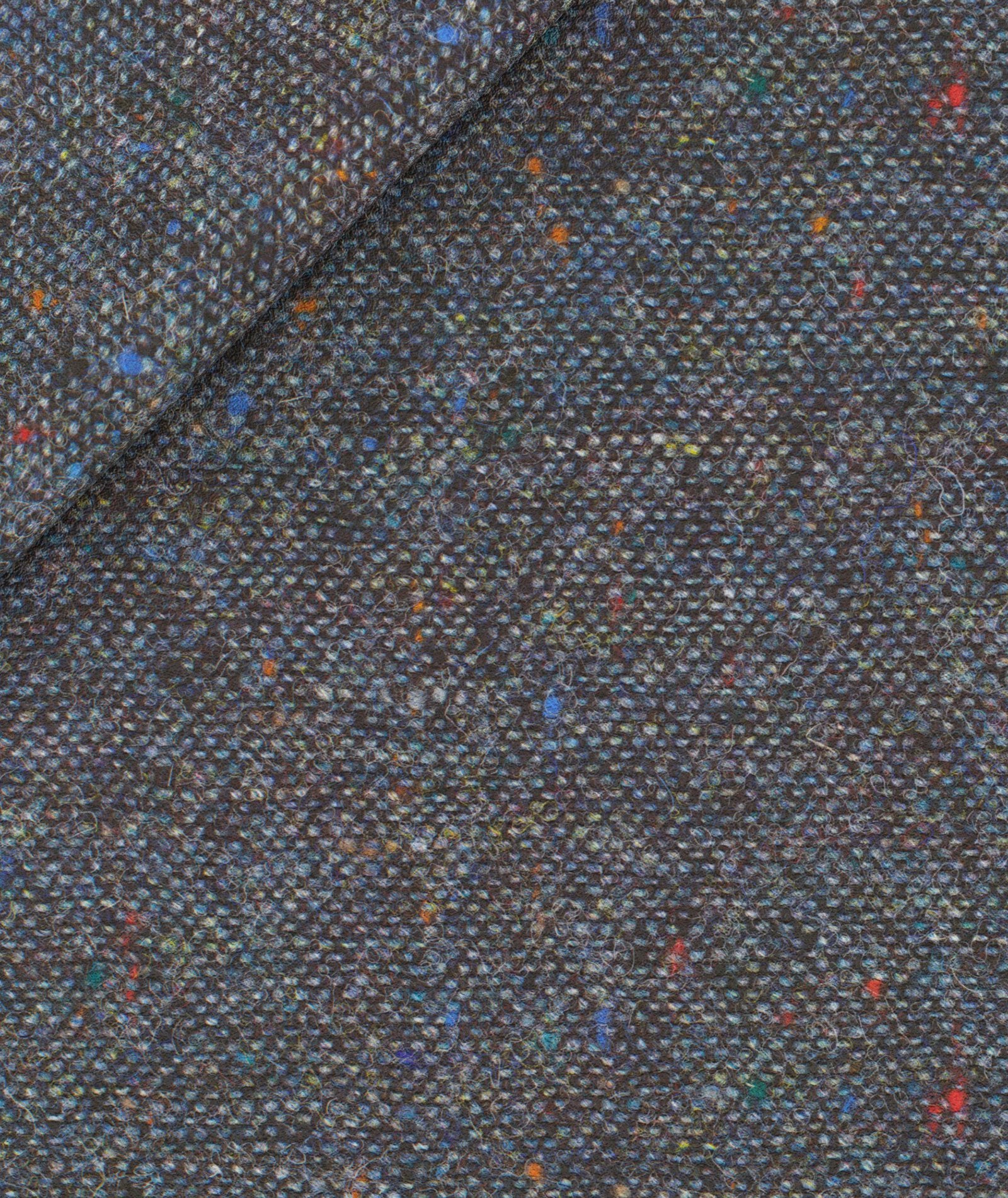 Ce gilet Sur Mesure est réalisé avec un tissu de laine de la manufacture Bottoli. 100% en laine shetland, il offre un aspect plein et consistant caractéristique, avec un toucher légèrement plus rugueux que celui de la laine mérinos, qui définit une allure britannique intemporelle, très recherchée. La technique d’exécution knickerbocker - qui consiste à ajouter des bouts de laine d’autres couleurs qui crée l’effet multicolore - illumine la base couleur pétrole. Le résultat est un vêtement raffiné parfait pour les temps libres.
